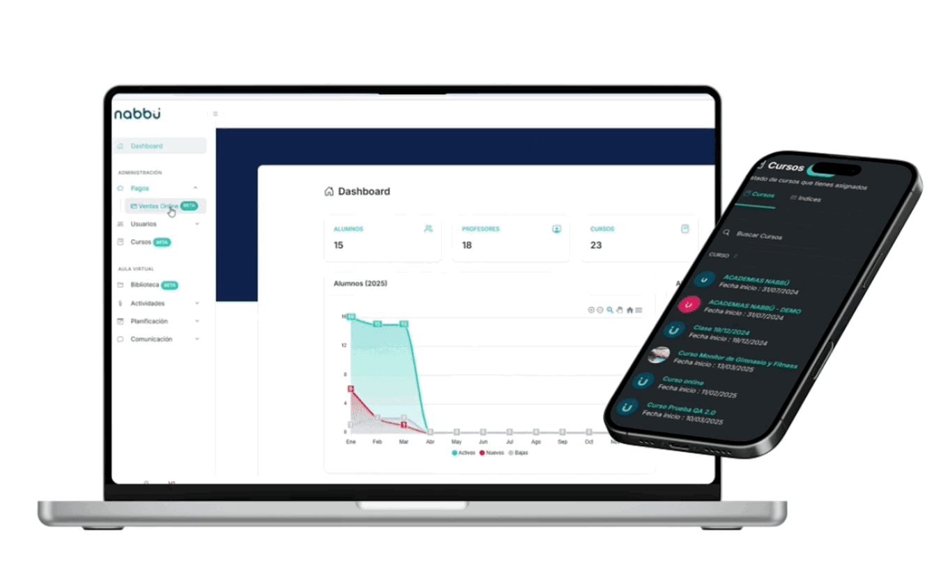 Gestiona tus cursos, profesores y alumnos de un modo fácil y automatizado.