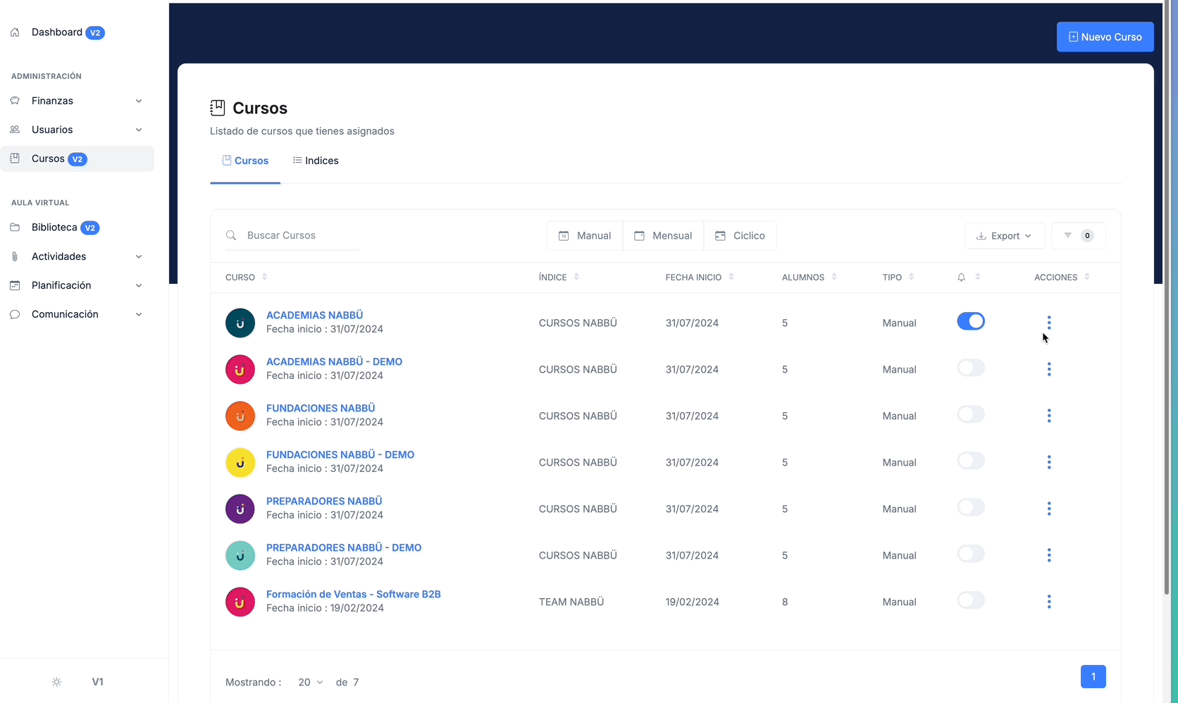 Plataforma educativa con nuevos módulos e integraciones todos los meses.